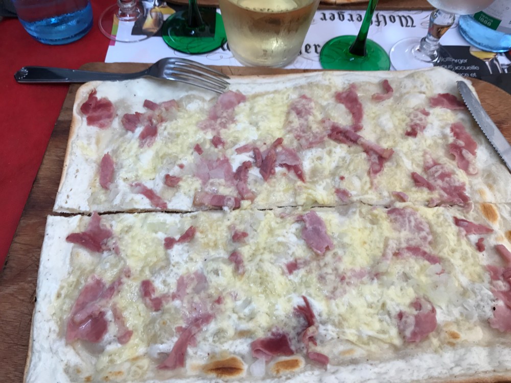 Vi har vast rundt her nå noen uker, i landet av overdådighet! Nydelige skjell, fantastisk fisk, grønnsaker og farger. Nå har vi kommet til Alsace, og det er ikke sjømat som er viktigst. Her går det i choucroutes, svinekjøtt og fermentert kål, bakeoff, som er langtidskokt kjøtt med poteter og grønnsaker, og en favoritt: tarte flambée, som er en pizzaliknende pai med creme fraiche, bacon, løk og lokale oster. Du og du, sier jeg bare. Vi lager masse godt selv og, og snoper råvarer som røykt and, tørket og røykt bacon, pateer og foie gras. Og ost. Masse ost!